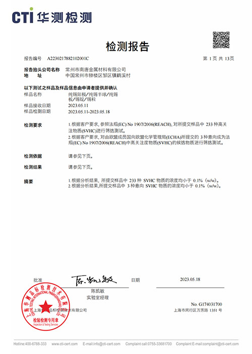 锡检测报告